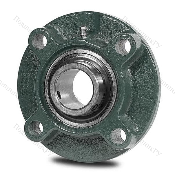Фланцевая гильза из чугуна или стали оснащена корпусным радиальным шарикоподшипником UC-серии, имеющим внутреннюю обойму удлиненного вида и винтовой стопорной крепеж. Монтаж детали осуществляется методом подгонки.