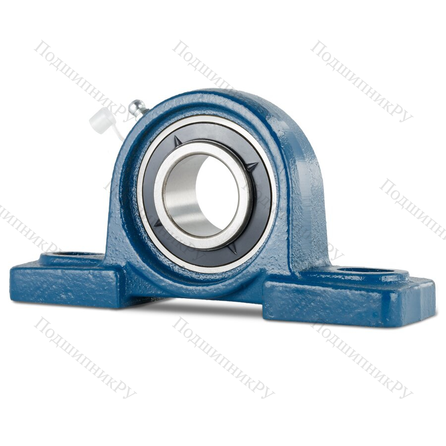 - вкладыш подшипника состоит из сплошного сферического наружного кольца, расширенного с обеих сторон внутреннего кольца с коническим отверстием, а также сепаратора; корпус Pillow Block (чугун) оснащен двумя пазами для фиксации